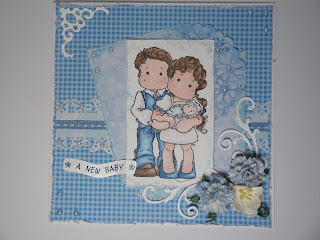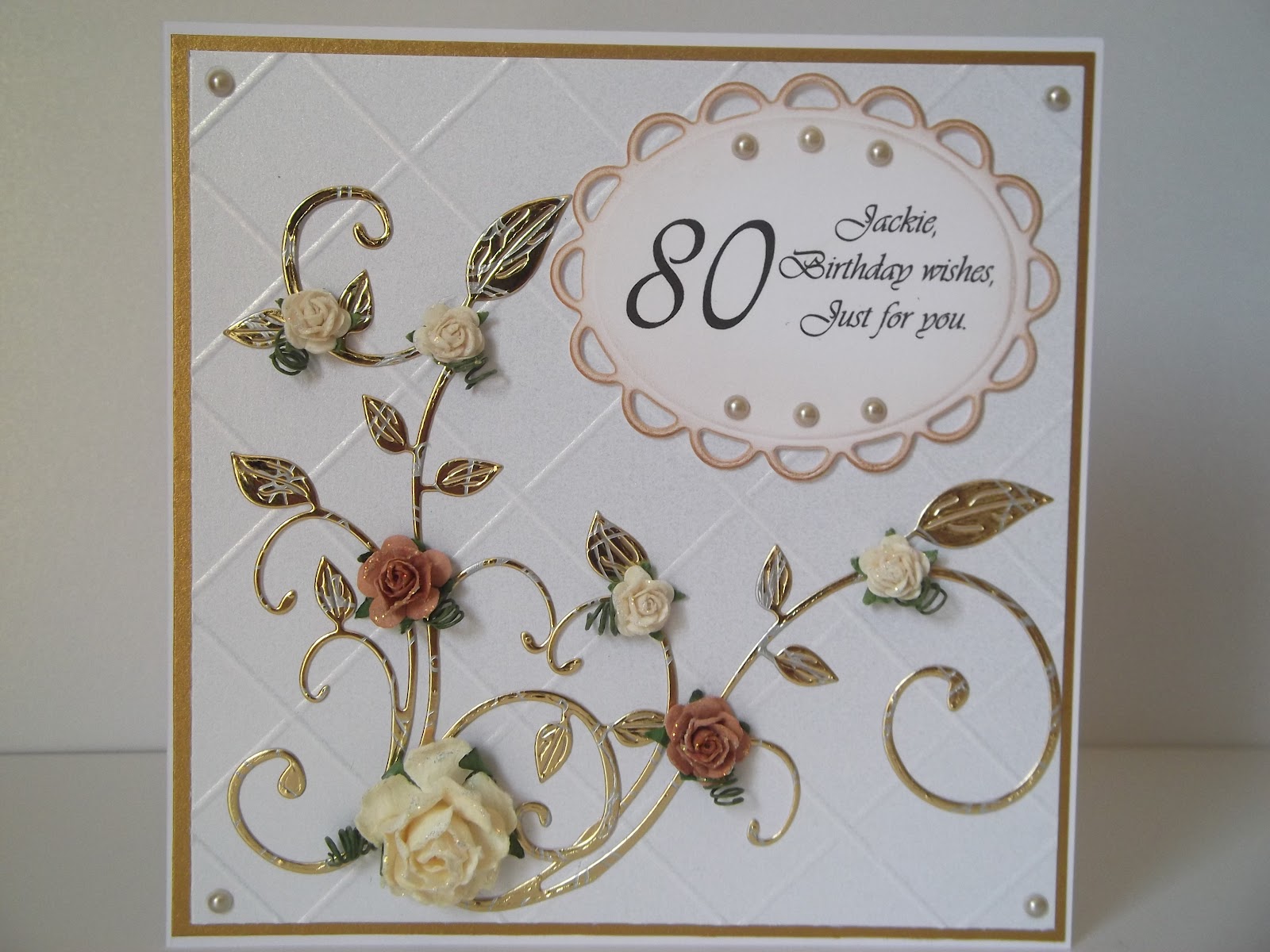 I have a card to share that i made a while back now. I thought i`d try something different for me,so used my hougie board to create the background,and just simply die cut a couple of cheery lynn swirls and added some roses.The sentiment was computer generated and cut out with a spellbinders die which i distressed with ink.Added some pearls and hey presto!